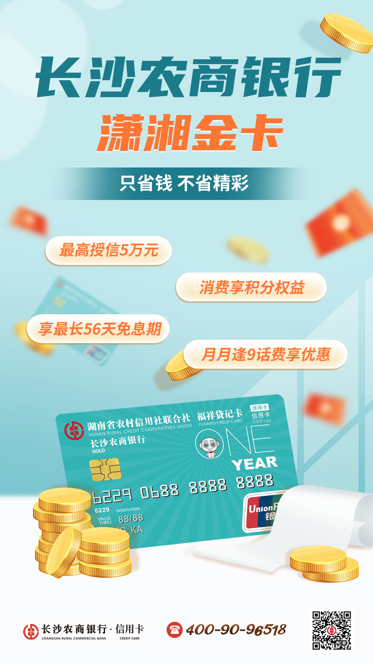 长沙农商银行潇湘金卡是长沙农商银行对外发行的,以分期优惠为特色,具有消费信用、转账结算、存取现金等功能的银联标准信用卡。
